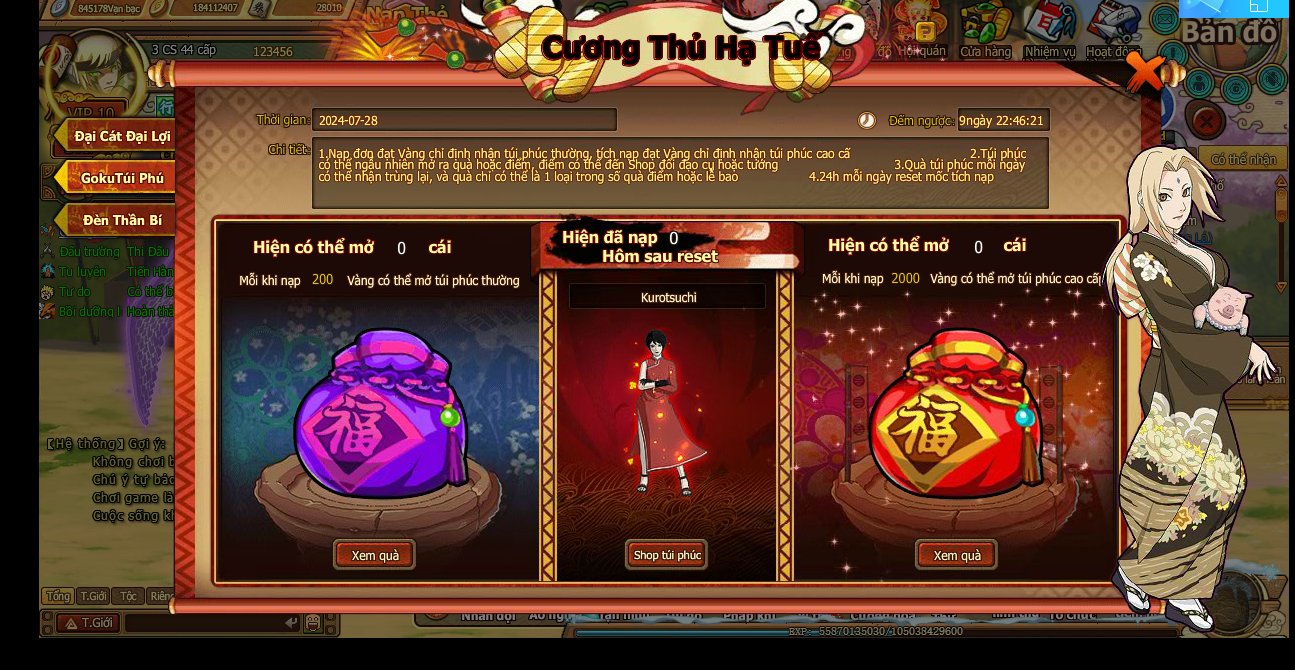 1. Nạp đơn đạt Vàng chỉ định nhận túi phúc thường, tích nạp Vàng chỉ định nhận túi phúc cao cấp.