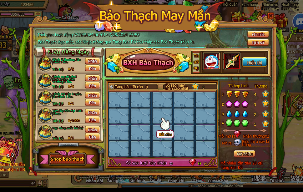 2. Dùng Tàng Bảo Đồ tiến hành mini game Quật Bảo (Tàng Bảo Đồ không đủ dùng Vàng bù đầy, 1 Tàng Bảo Đồ = 50 Vàng).