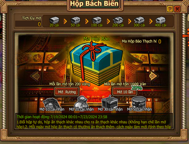 3. Mở các loại hộp tổng tích lũy nhận hộp thưởng tích lũy Bách biến ma hộp.