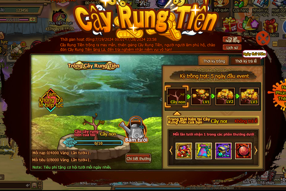 Vàng trả lễ của mỗi mốc mức độ nạp 1 lần đều chỉ tham gia 1 lần