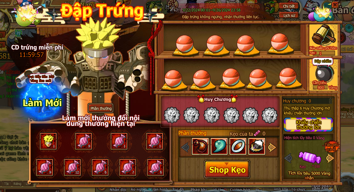 7. Trong quá trình đập trứng nhận Huy Chương , tập hợp đủ 6 Huy Chương mở kiêu chiến thưởng lớn , ở kiêu chiến thưởng lớn nhận lượng lớn kẹo