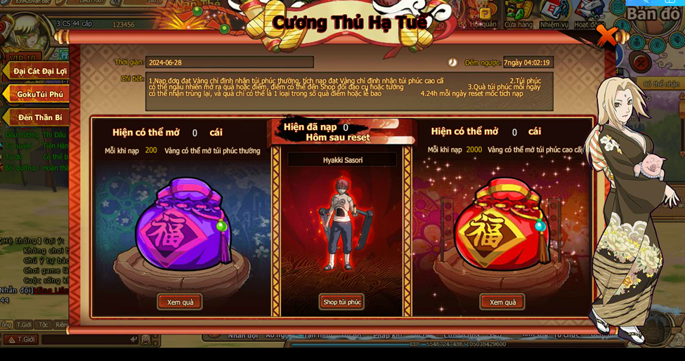 3. Quà túi phúc mỗi ngày có thể nhận trùng lại, và quà chỉ có thể là 1 loại trong số quà điểm hoặc lễ bao.
