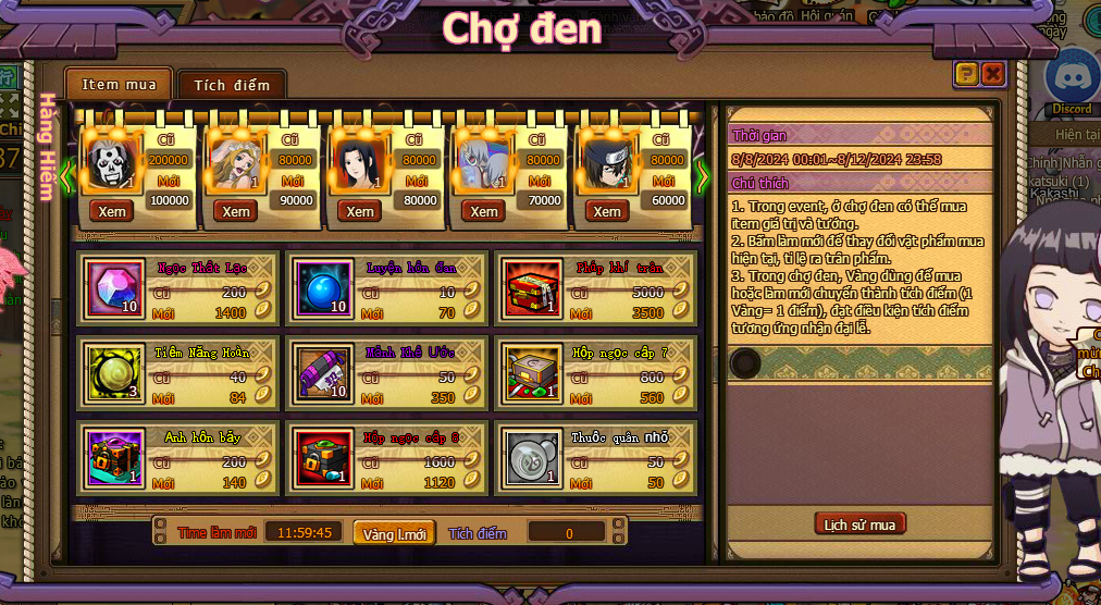1. Trong event , ở chợ đen có thể mua item giá trị và tướng