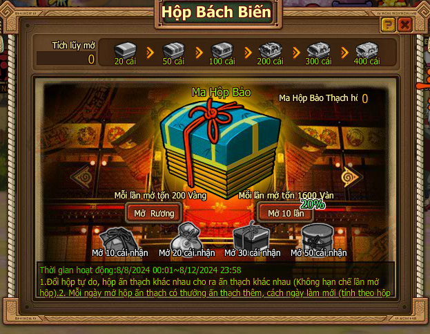 3. Mở các loại hộp tổng tích lũy nhận hộp thưởng tích lũy Bách biến ma hộp.