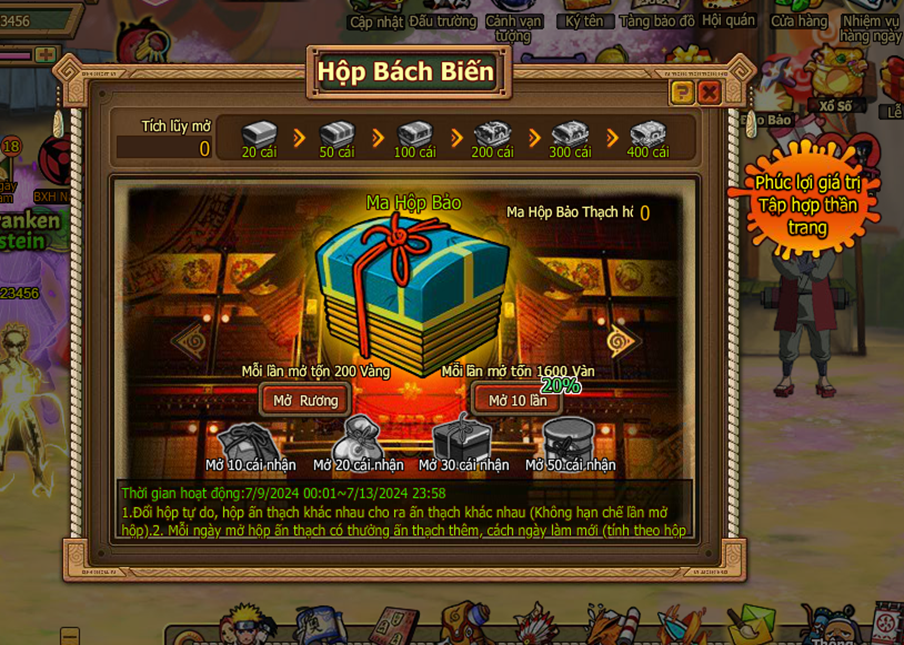 3. Mở các loại hộp tổng tích lũy nhận hộp thưởng tích lũy Bách biến ma hộp.