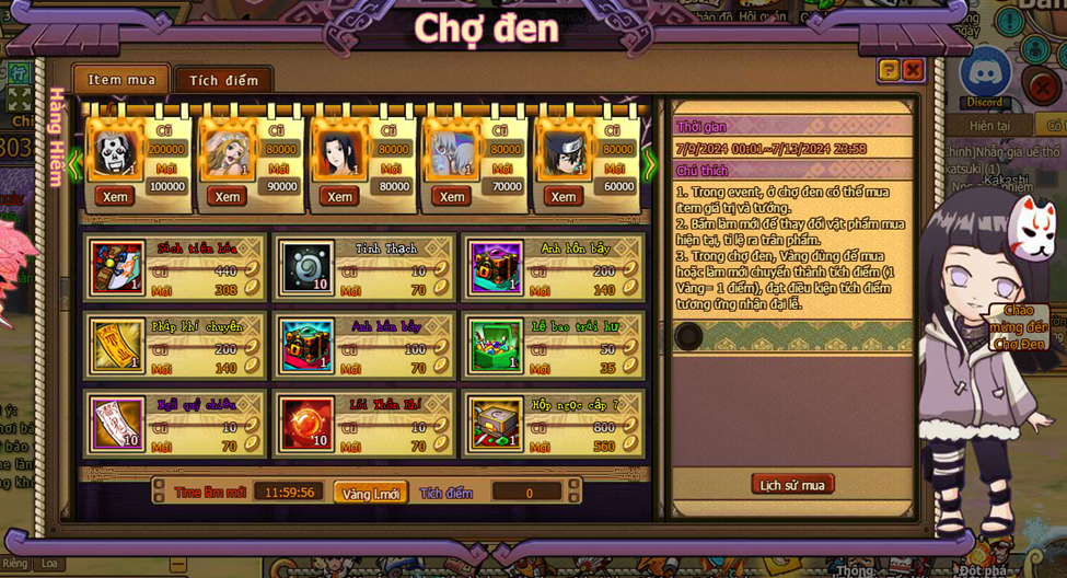 1. Trong event , ở chợ đen có thể mua item giá trị và tướng