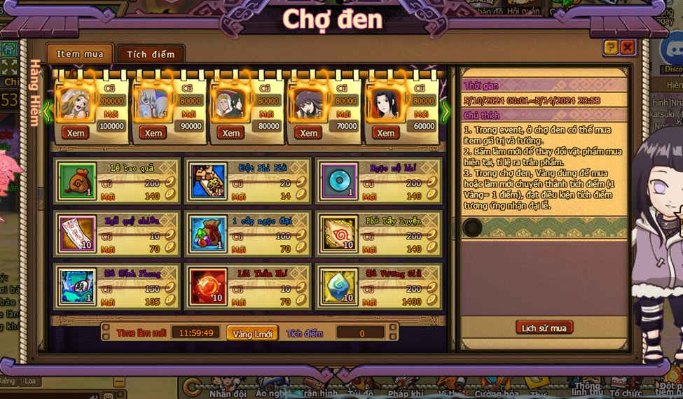1. Trong event , ở chợ đen có thể mua item giá trị và tướng