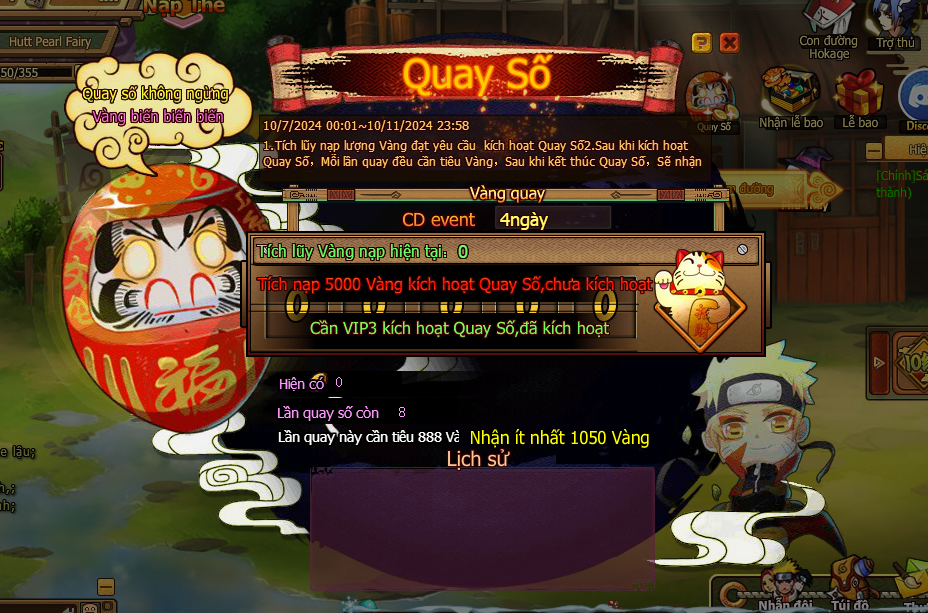 1. Tích lũy nạp lượng vàng đạt yêu cầu kích hoạt Quay Số.