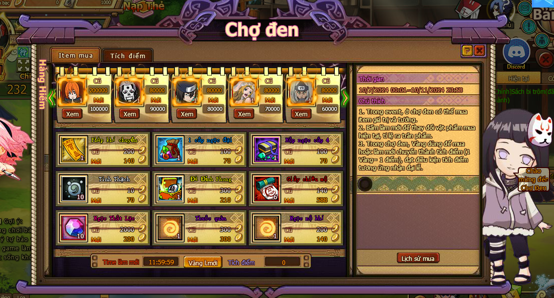 1. Trong event , ở chợ đen có thể mua item giá trị và tướng