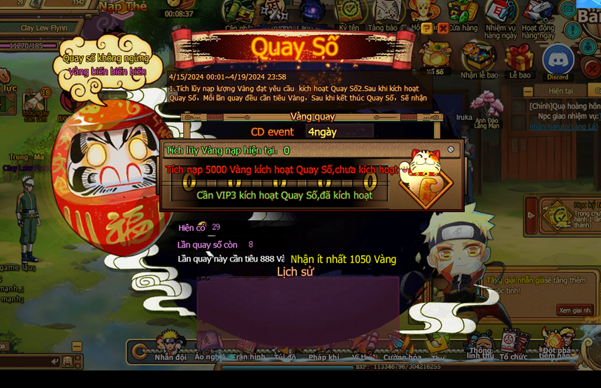3. Trong thời gian event, người chơi tiêu đủ 1000 vàng nhận 1 lần cơ hội vòng quay lễ kim, mỗi ngày nhiều nhất có thể nhận 20 lần