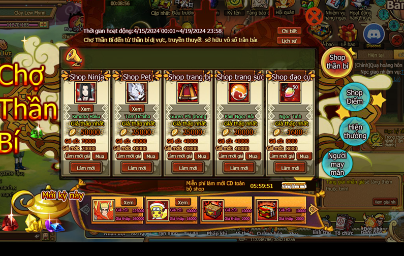 2. Trong chợ thần bí có 5 loại shop , phân biệt gồm shop ninja , shop pet , shop trang bị , shop trang sức và shop đạo cụ , mỗi shop đều bán loại vật phẩm tương ứng
