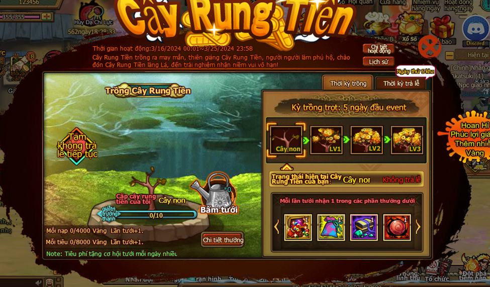 1. Trong thời gian event nạp Vàng đạt mốc chỉ định kích hoạt quyền mua đạo cụ giới hạn giảm giá: một số đạo cụ còn miễn phí nhận.