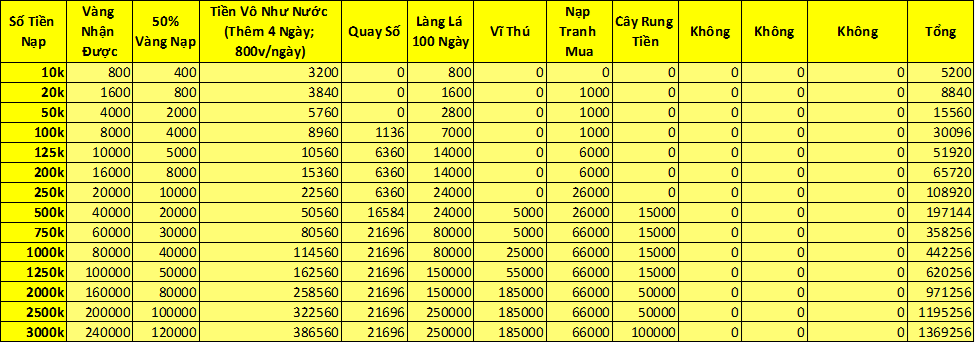 Vàng trả lễ của mỗi mốc mức độ nạp 1 lần đều chỉ tham gia 1 lần
