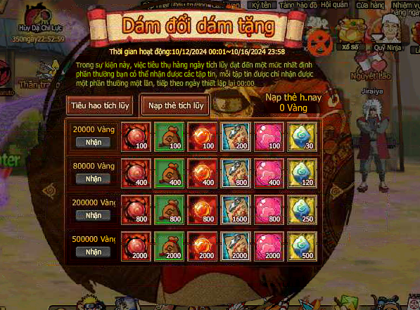 3. Ninja cuôi cấp càng cao , vàng trả lễ càng nhiều