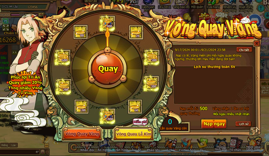 1. Trong thời gian event, người chơi nạp đủ 500 vàng nhận 1 lần cơ hội quay ( vòng quay vàng )