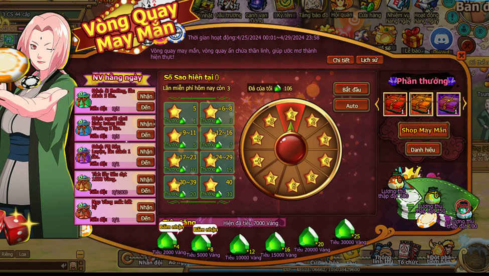 1.Trong thời gian hoạt động hoan thành nv hằng ngày nhận sao may mắn