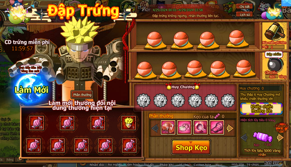 4. Người chơi dùng tinh năng làm mới , làm mới đập trứng và phần thưởng trong trứng