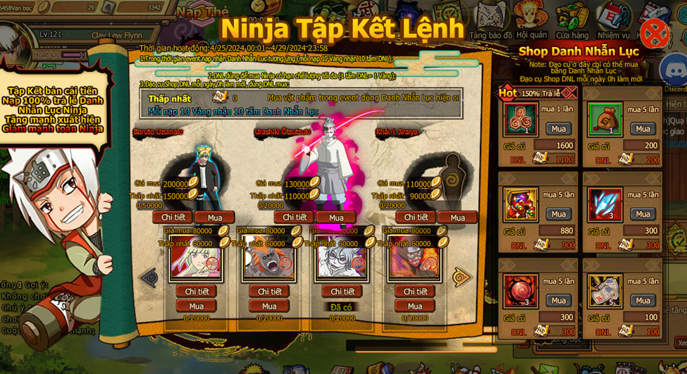 2.DNL dùng để mua ninja có hạn chế lượng tối đa ( 1 tấm DNL bằng 1 vàng )