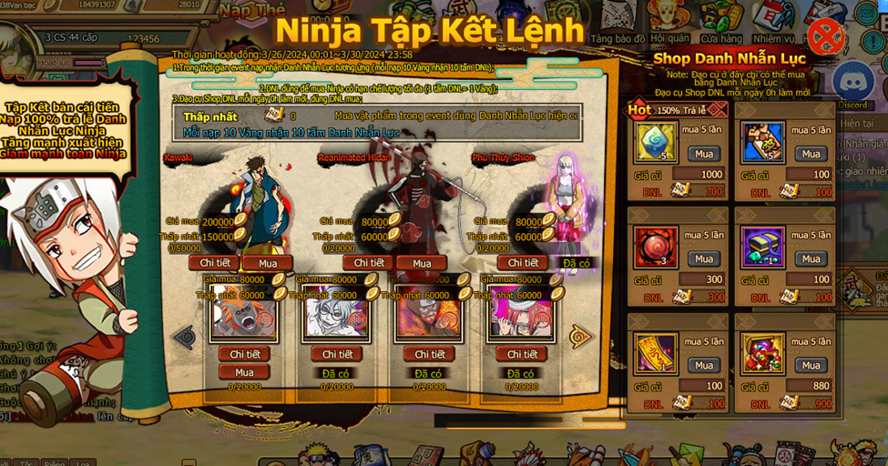 2.DNL dùng để mua ninja có hạn chế lượng tối đa ( 1 tấm DNL bằng 1 vàng )