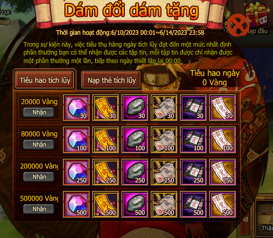 Vàng trả lễ của mỗi mốc mức độ nạp 1 lần đều chỉ tham gia 1 lần