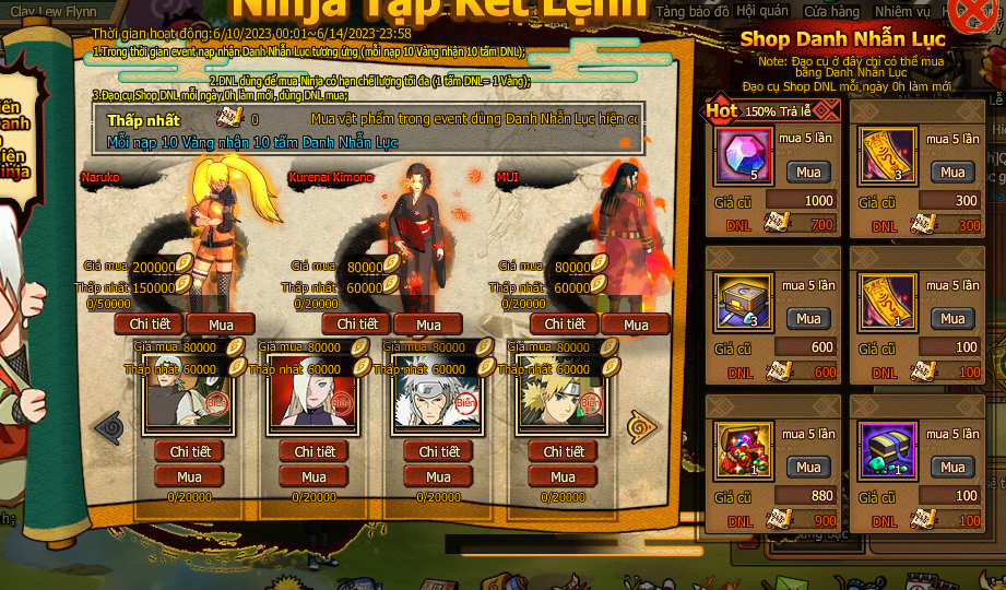 2.DNL dùng để mua ninja có hạn chế lượng tối đa ( 1 tấm DNL bằng 1 vàng )