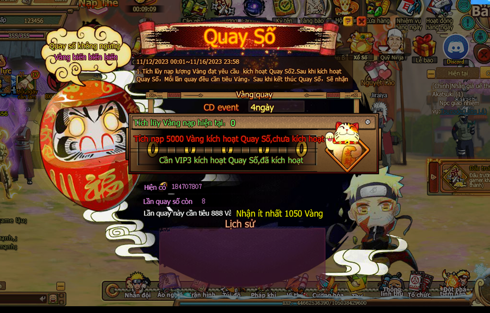 1. Tích lũy nạp lượng vàng đạt yêu cầu kích hoạt Quay Số.