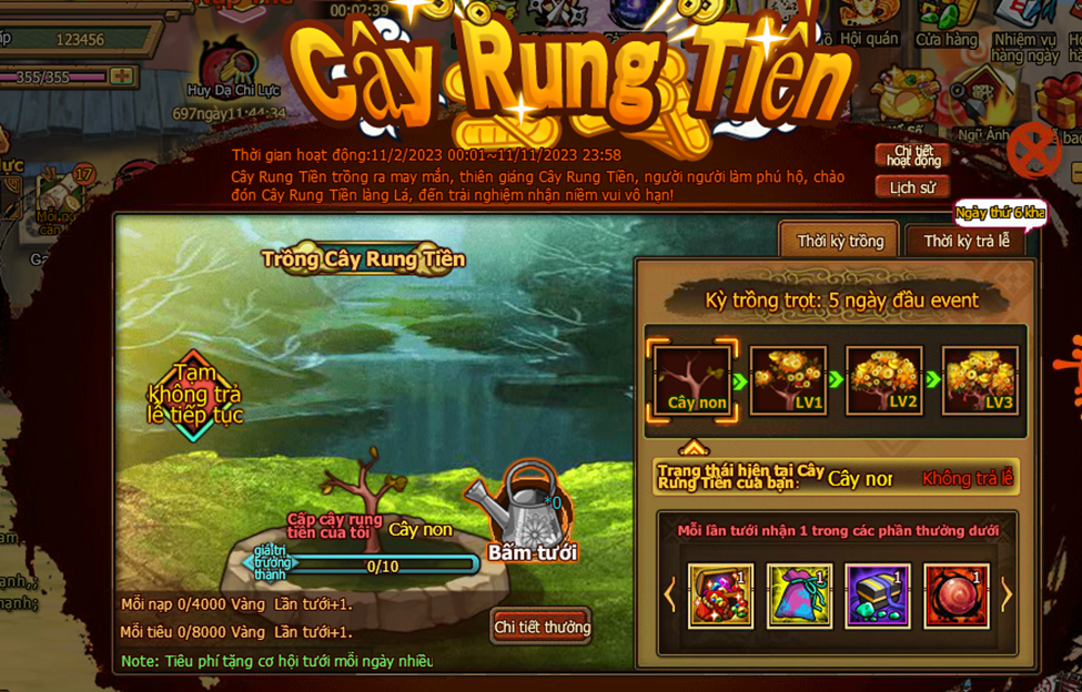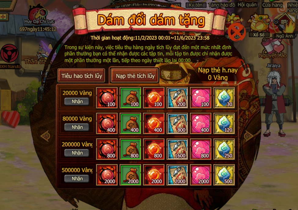 3. Trong thời gian event , người chơi tiêu đủ 1000 vàng nhận 1 lần cơ hội vòng quay lễ kim , mỗi ngày nhiều nhất có thể nhận 20 lần