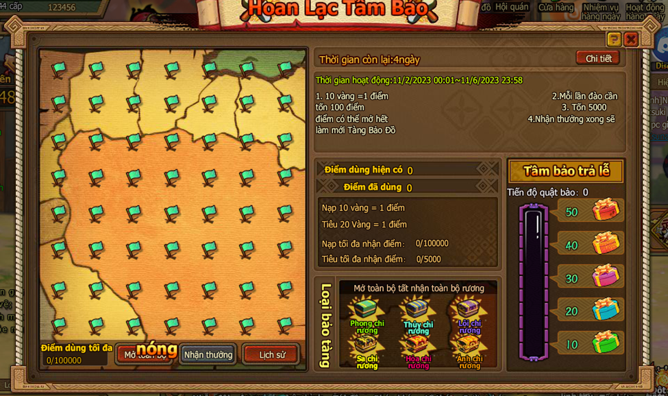 5. Nhận thưởng sẽ làm mới Tàng Bảo Đồ.