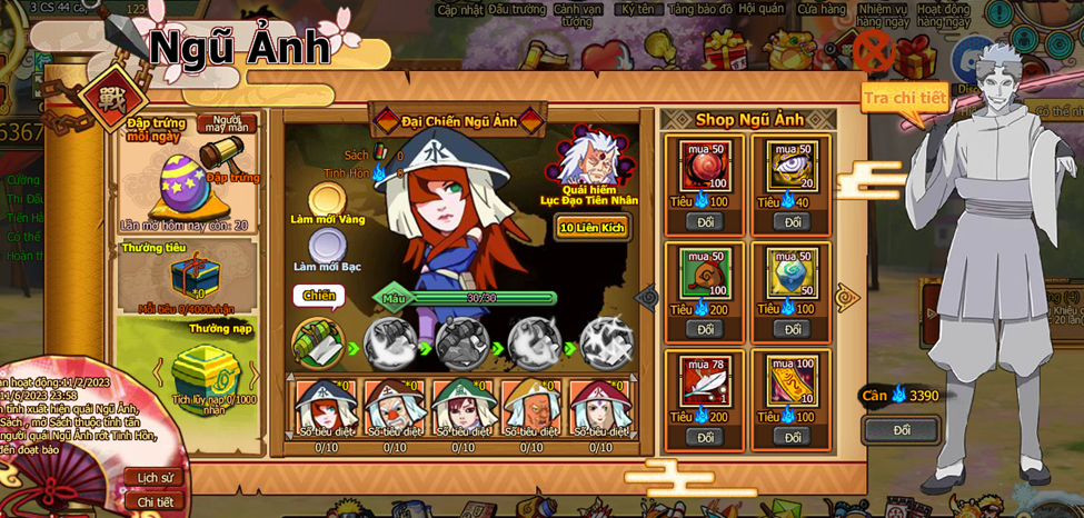 7. ở [Shop Ngũ Ảnh] tiêu [Tinh hồn] đổi các loại đạo cụ, và Ninja mới [Otsutsuki Urashiki] đợi bạn chiêu mộ.
