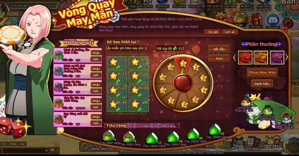 1.Trong thời gian hoạt động hoan thành nv hằng ngày nhận sao may mắn