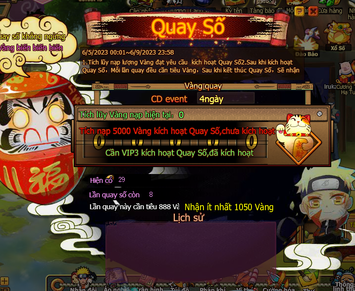 1. Tích lũy nạp lượng vàng đạt yêu cầu kích hoạt Quay Số.