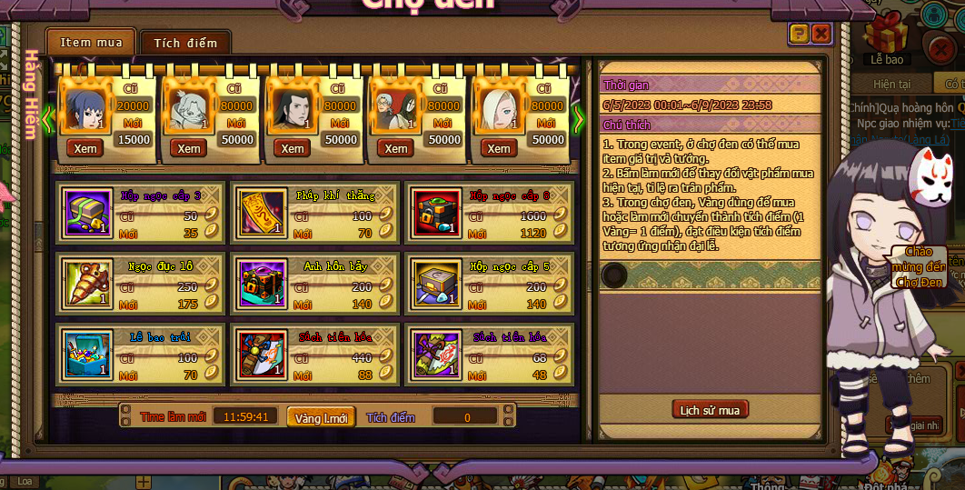 1. Trong event , ở chợ đen có thể mua item giá trị và tướng