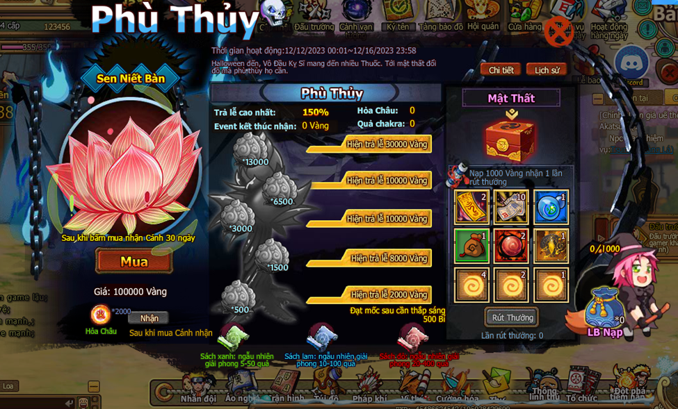3. Mỗi nạp 1000 Vàng nhận 1 LB Nạp, lặp lại nhận.