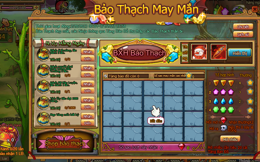1.Trong thời gian hoạt động hoan thành nv hằng ngày nhận sao may mắn