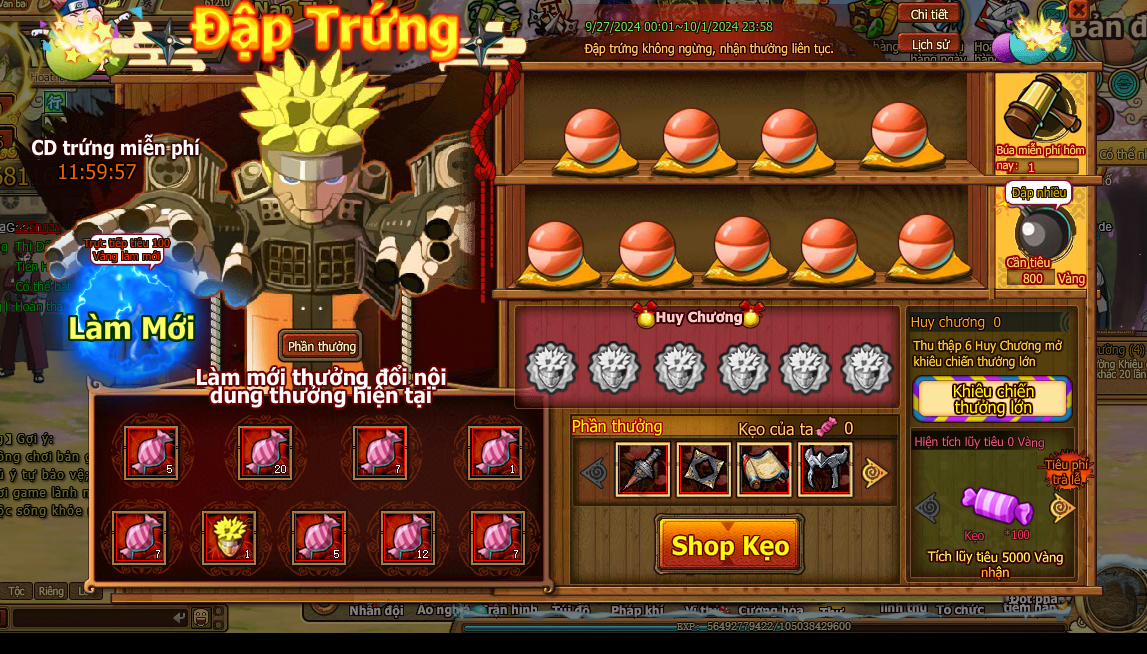 8. Trong quá trình đập trứng nhận kẹo , tiêu kẹo ở shop đổi vật phẩm
