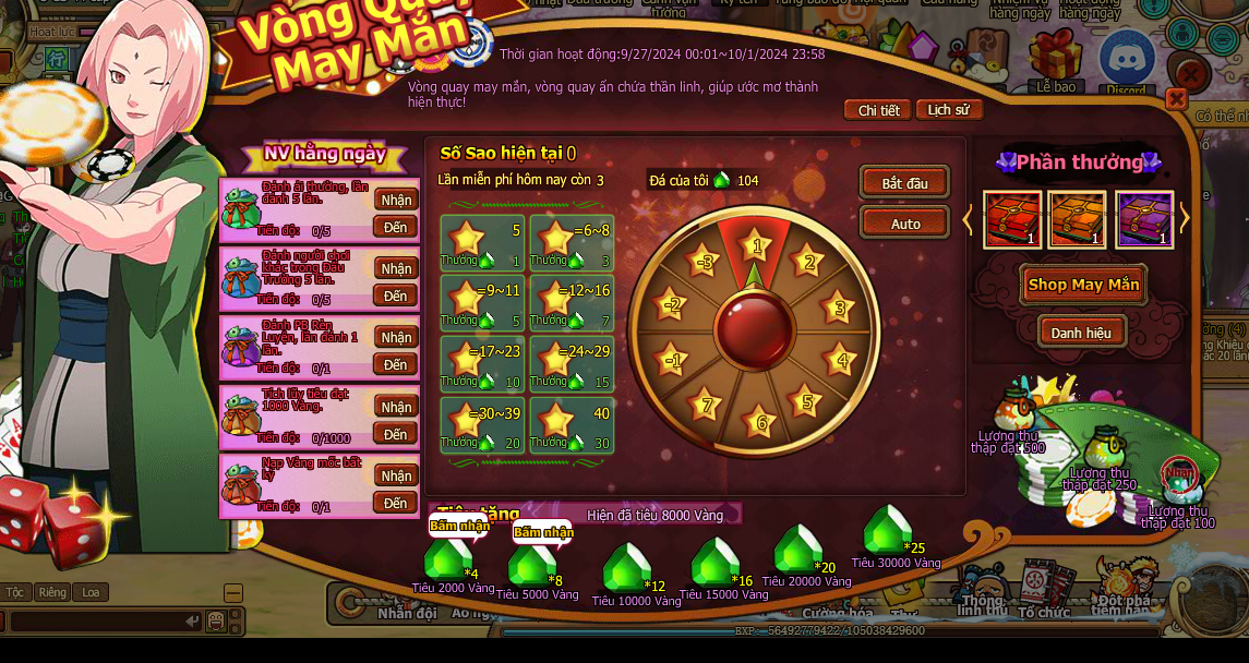 1.Trong thời gian hoạt động hoan thành nv hằng ngày nhận sao may mắn