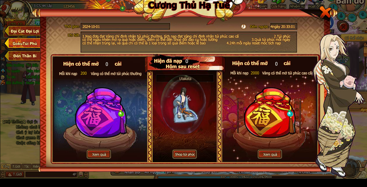 3. Quà túi phúc mỗi ngày có thể nhận trùng lại, và quà chỉ có thể là 1 loại trong số quà điểm hoặc lễ bao.