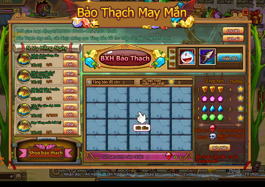 2. Dùng Tàng Bảo Đồ tiến hành mini game Quật Bảo (Tàng Bảo Đồ không đủ dùng Vàng bù đầy, 1 Tàng Bảo Đồ = 50 Vàng).
