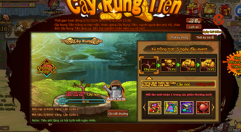 Trong thời gian event nạp 1 lần đạt mức chỉ định , nhận trả lễ vàng
