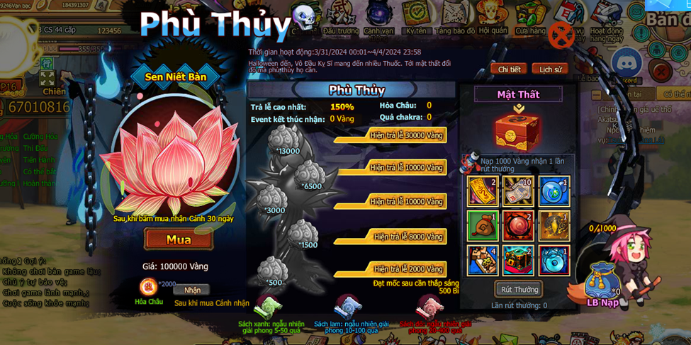 3. Mỗi nạp 1000 Vàng nhận 1 LB Nạp, lặp lại nhận.