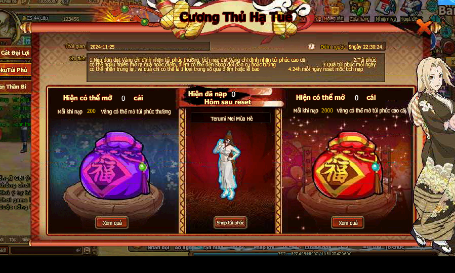 2. Túi phúc có thể ngẫu nhiên mở ra quà hoặc điểm, điểm có thể đến Shop đổi đạo cụ hoặc tướng.