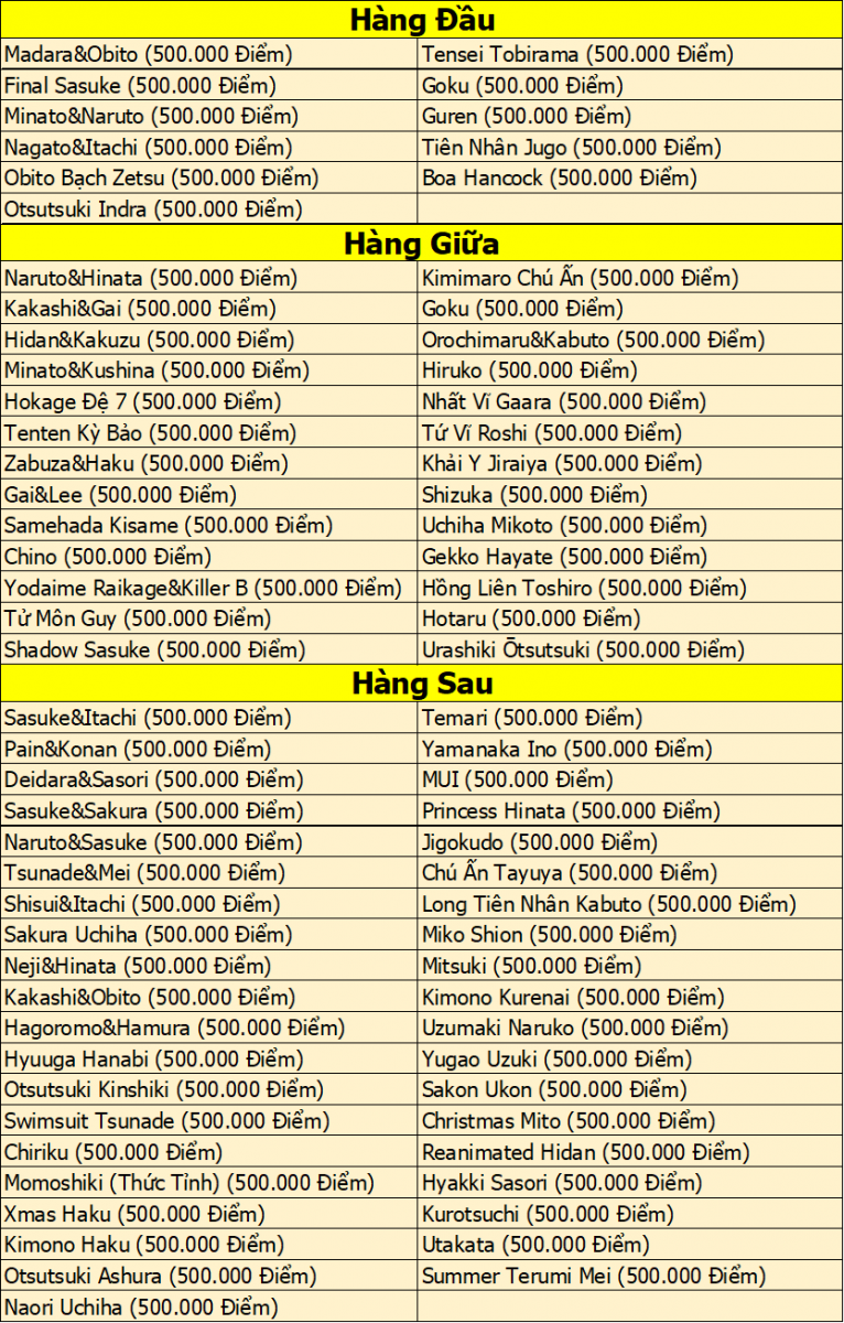 - Pet : Uzumaki Himawari ( 100.000 điểm )