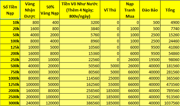 2. Đã sửa mốc nạp nhỏ nhất thành 800 vàng