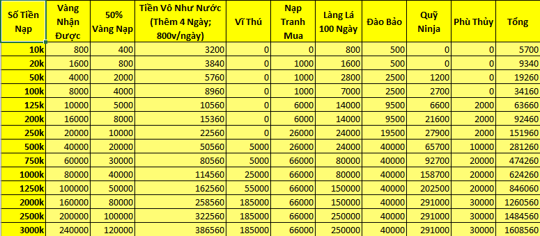 3. Ninja cuôi cấp càng cao , vàng trả lễ càng nhiều