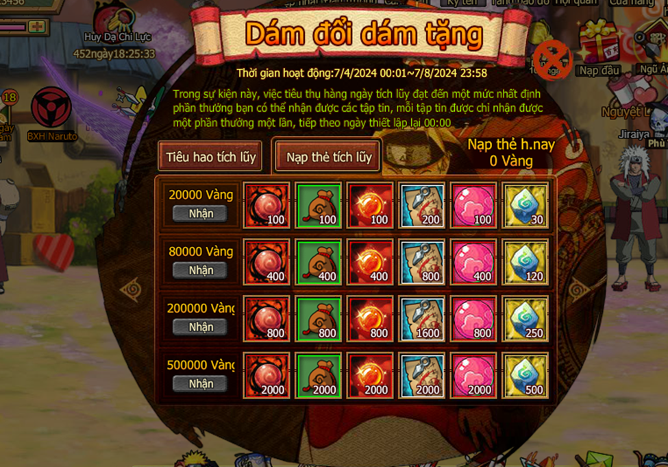 Trong thời gian event nạp 1 lần đạt mức chỉ định , nhận trả lễ vàng
