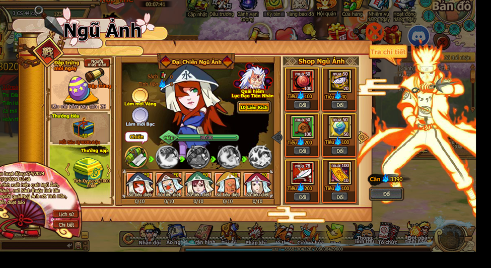 7. ở [Shop Ngũ Ảnh] tiêu [Tinh hồn] đổi các loại đạo cụ, và Ninja mới [Minato Cửu Vĩ] đợi bạn chiêu mộ.