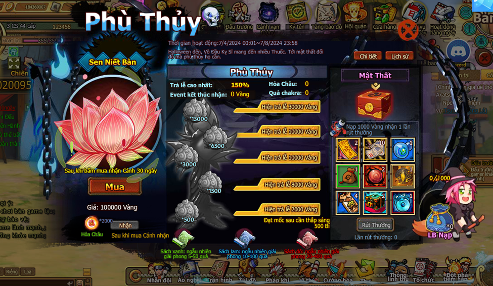 3. Mỗi nạp 1000 Vàng nhận 1 LB Nạp, lặp lại nhận.