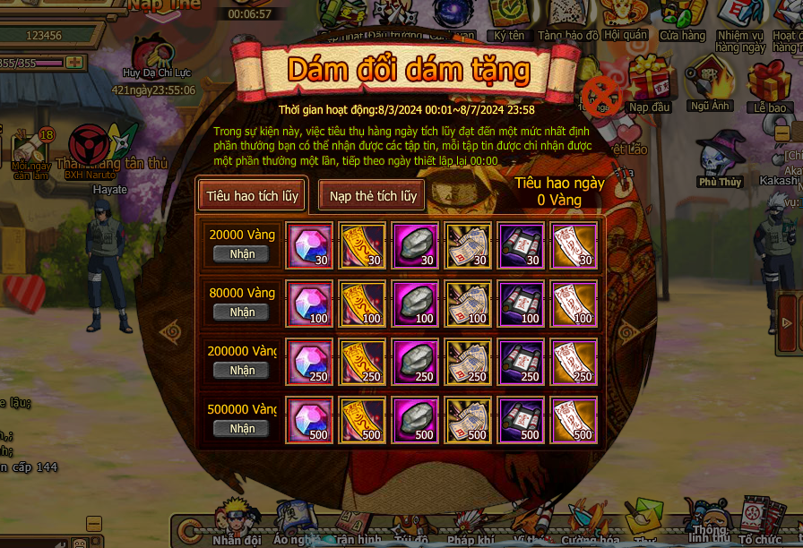 1. Trong thời gian event nạp Vàng đạt mốc chỉ định kích hoạt quyền mua đạo cụ giới hạn giảm giá: một số đạo cụ còn miễn phí nhận.