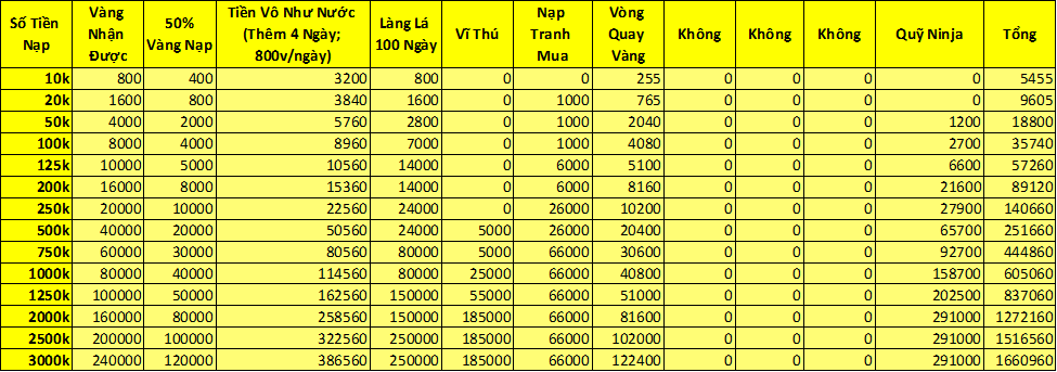 3. Ninja cuôi cấp càng cao , vàng trả lễ càng nhiều
