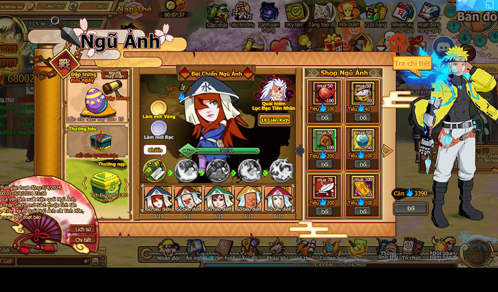 7. ở [Shop Ngũ Ảnh] tiêu [Tinh hồn] đổi các loại đạo cụ, và Ninja mới [Cyber Naruto] đợi bạn chiêu mộ.